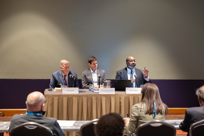 Paul Smith, in his presentation, highlighted the Supreme Court’s increasing use of what is known as the “shadow docket.” Cases on the shadow docket are more difficult for the public to get information about than those on the merits docket; they are often resolved using unsigned opinions and orders which offer the public little insight into the reasoning of the justices.
